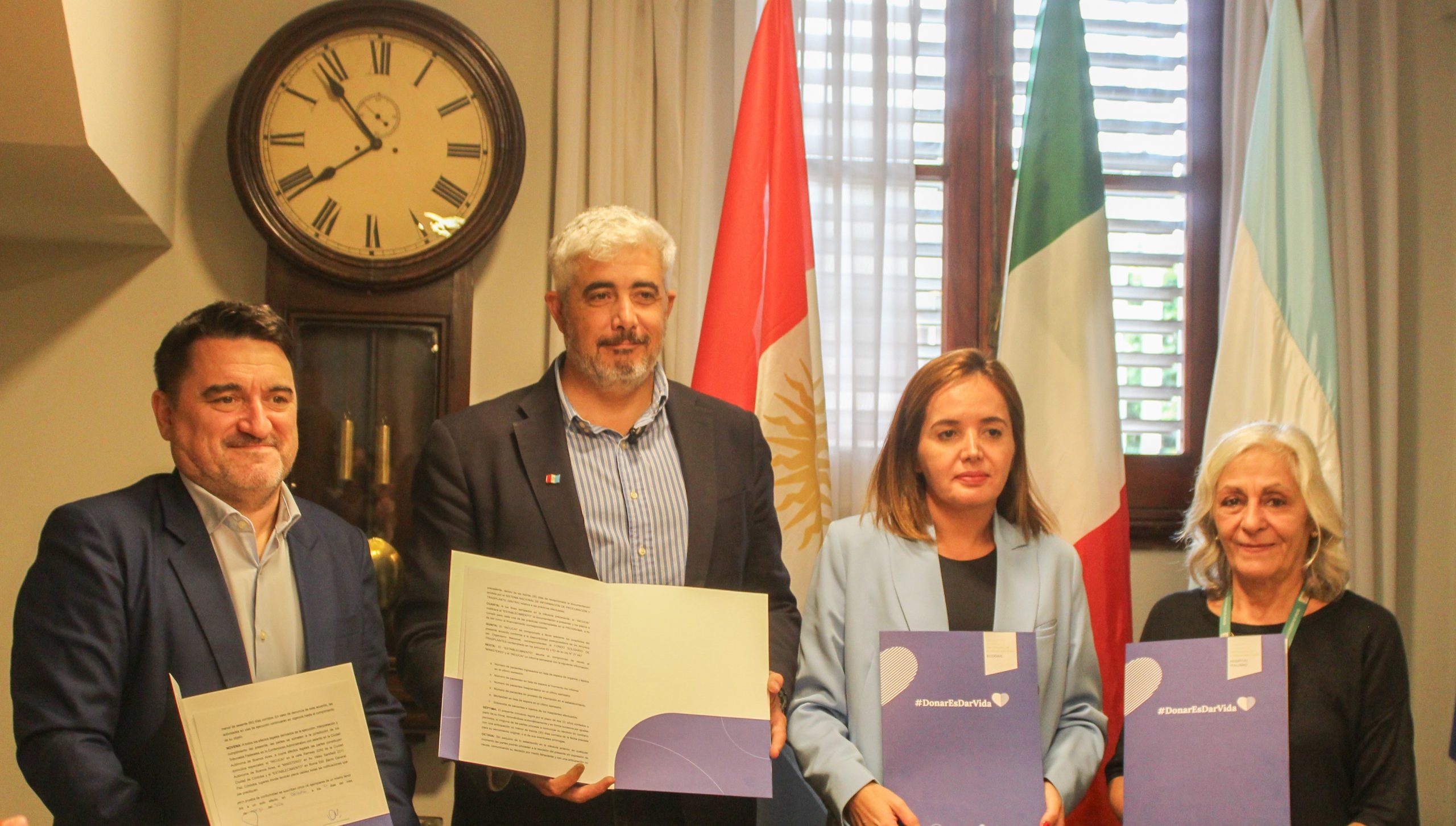La firma del acuerdo contó con la participación del ministro de Salud de la Provincia de Córdoba, Dr. Ricardo Pieckensteiner; el presidente del INCUCAI, Dr. Richard Malan; la directora del ECODAIC, Dra. Romina Quiroga Guallanes; y nuestra directora médica, Dra. Susana Caminos.